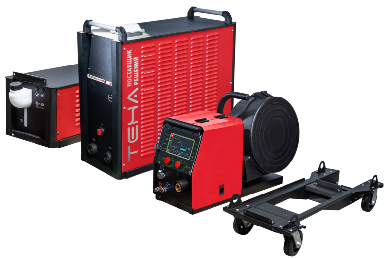 ТЕНА MIG: cовременный, полностью цифровой, универсальный сварочный источник, инверторного типа, сконструированный и произведенный в России с диапазоном от 350 до 500 А. Запас мощности позволяет выносить подающее устройство до 80 м. С предустановленным специализированным программным обеспечением ТЕНА.